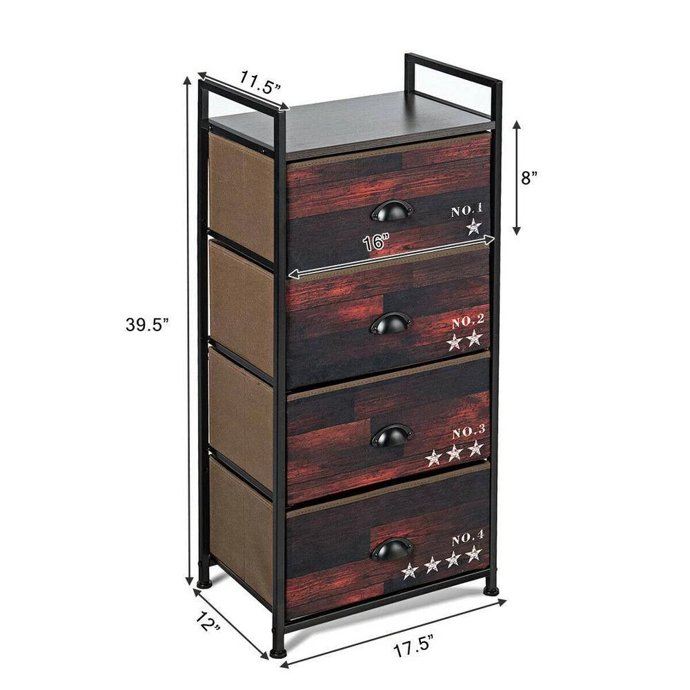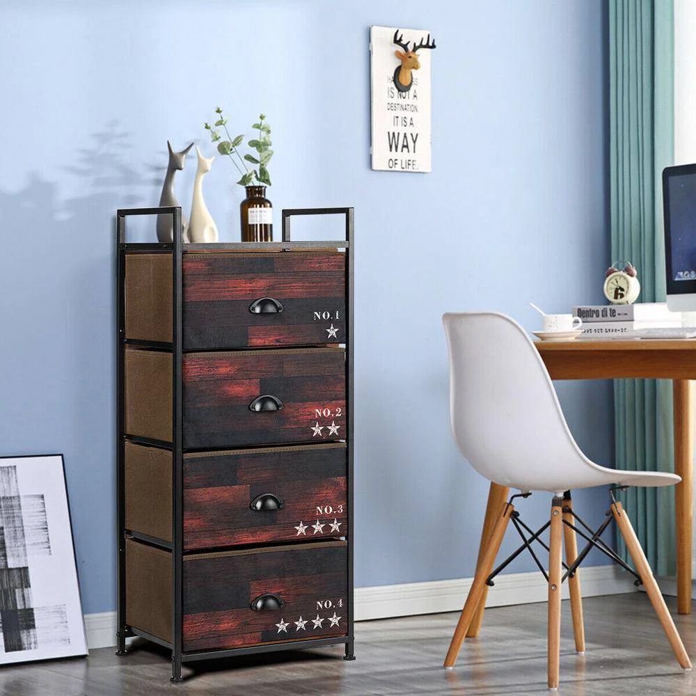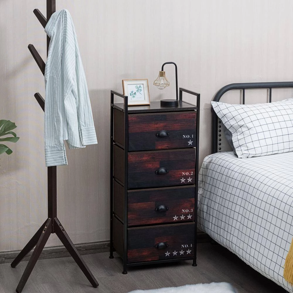 The practical and simple storage tower with 4 drawers. With a strong metal frame and a durable wooden table top, this storage tower is very stable and has an extremely long service life. Each drawer is equipped with MDF board and soft non-woven cloth, which can give you a good use experience. The large and spacious drawers allow you to place various items such as clothes, towels, help you make the most of the limited space. The high load-bearing top also provides ample display space for your decorations. Its unique appearance and versatile design allow it to be used in bedroom, living room or any other rooms. The lightweight frame and foldable drawers make this storage tower very easy to transport and store when not in use. If you are looking for it, don’t hesitate to buy it.