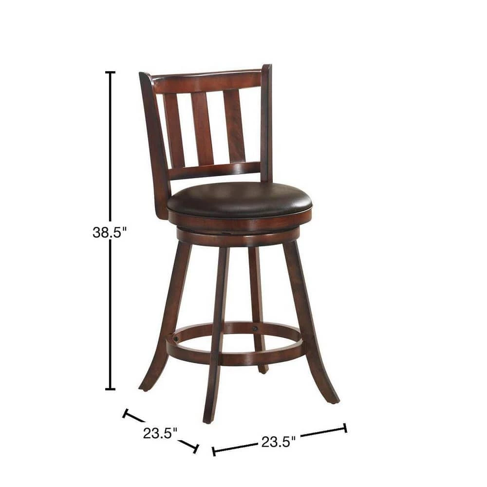 We know that you are looking for a 360-degrees swivel bar stool that features first-rate workmanship, an attractive outlook, and a reasonable price. This counter swivel chair must satisfy your needs. This 2-set swivel bar stool promises the free rotation function so you can change your position at ease. And the large upholstered seat offers you an easeful seating spot. Crafted from high-quality rubberwood timber, this item can keep a long time use. The weight capacity reaches 265 pounds, so you can seat on it without the feeling of worry. And the PVC leather surface is soft to touch and easy to maintain. It is effortless to clean with it only with a damp cloth. We can promise that this bar stool must be your favorite pick!