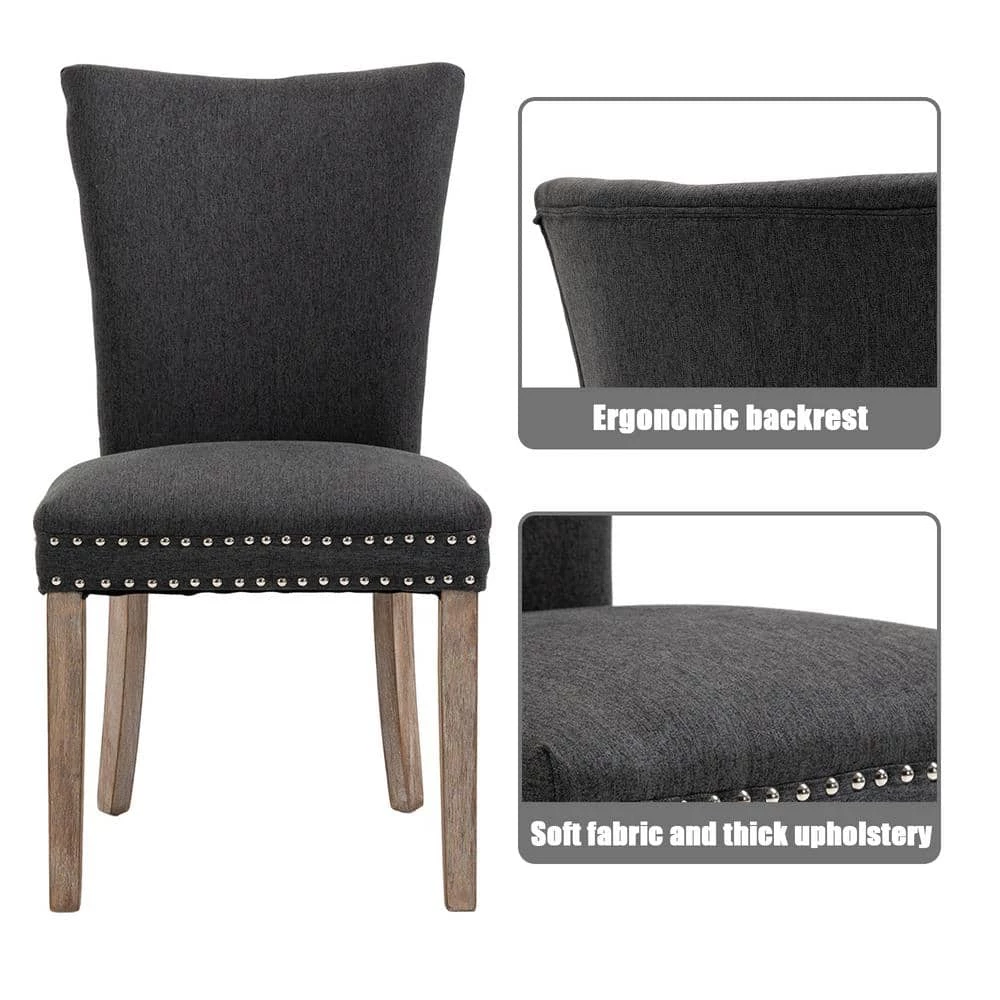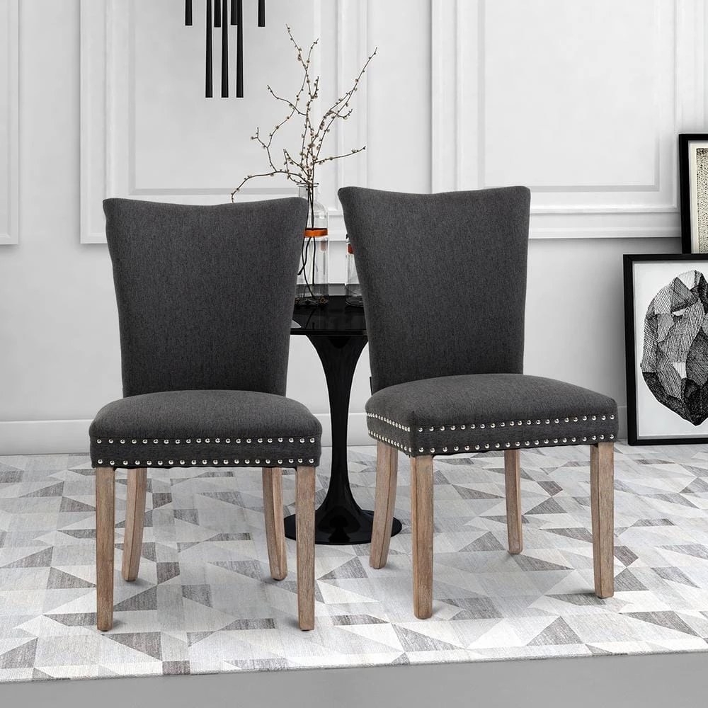 Simple yet elegant and chic, with sleek curves. It also has signature silver nailhead trim, dense foam padding, fine fabric upholstery and wooden legs. This dining chair is perfect for the modern home and resonates with elegance and charm.