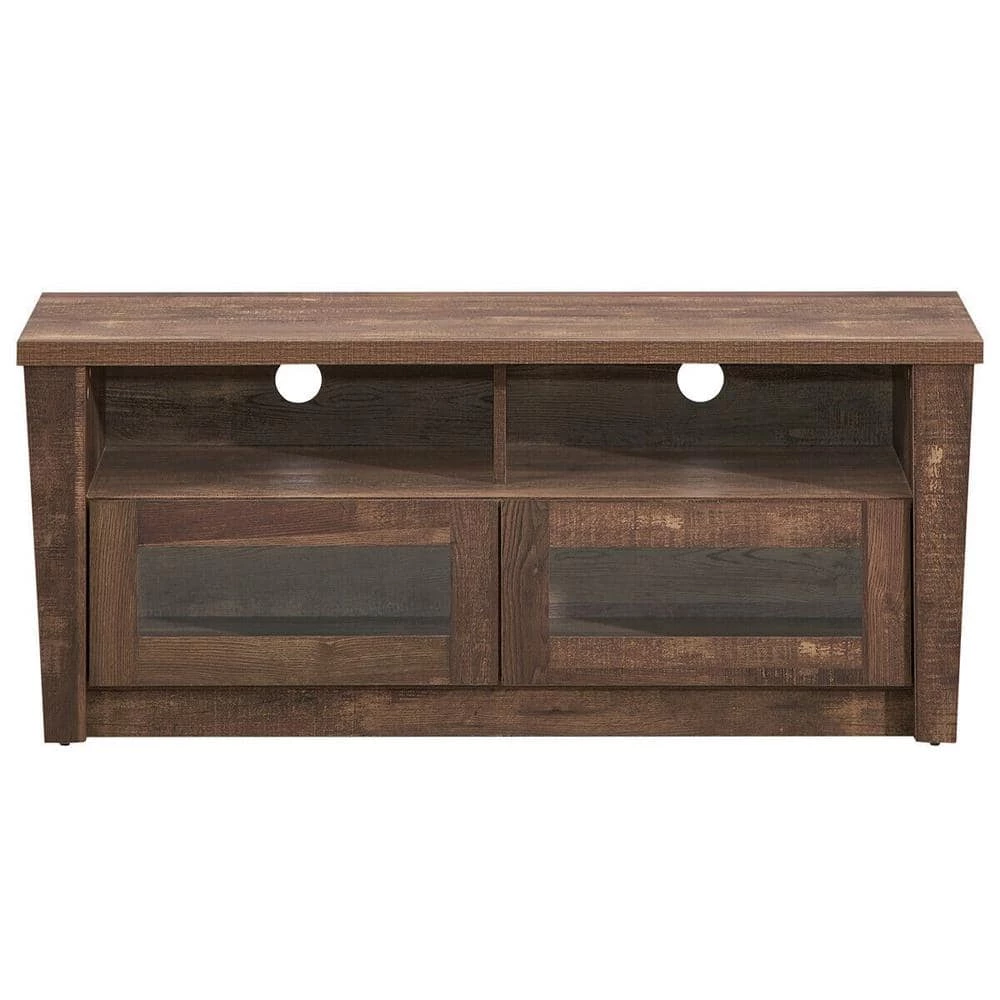 High-quality engineered wood ensures a sturdy and stable structure. Spacious desktop can accommodate almost any TV up to 55″. The TV stand is designed with 2 open shelves and 2 door cabinets, which provide ample space to put cable box, DVD player, tapes, magazines, etc. 2 wire management holes in the back can prevent clutter. Its classic and elegant appearance is suitable for living room, bedroom, recreation room and so on. Do not hesitate to buy it.