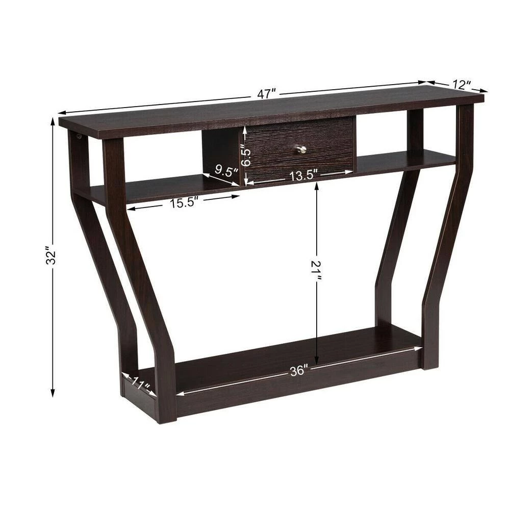 The simple but practical console table features a drawer and open shelf making it convenient to display and store your things. On the top, you can place your table lamp to read or your photo frames to decorate, on the additional lower shelf, you can place books, magazines, etc. It saves space and helps keep your room neat. Made of durable MDF with melamine is wear resistant and waterproof. This console table is hard enough to provide a lasting service. Plus, the base in the bottom ensures it’s steady. And tilting prevention device ensure the safety in use. In addition, this console table is easy to assemble under the easy -to -follow instruction. It is best option for you and your family.