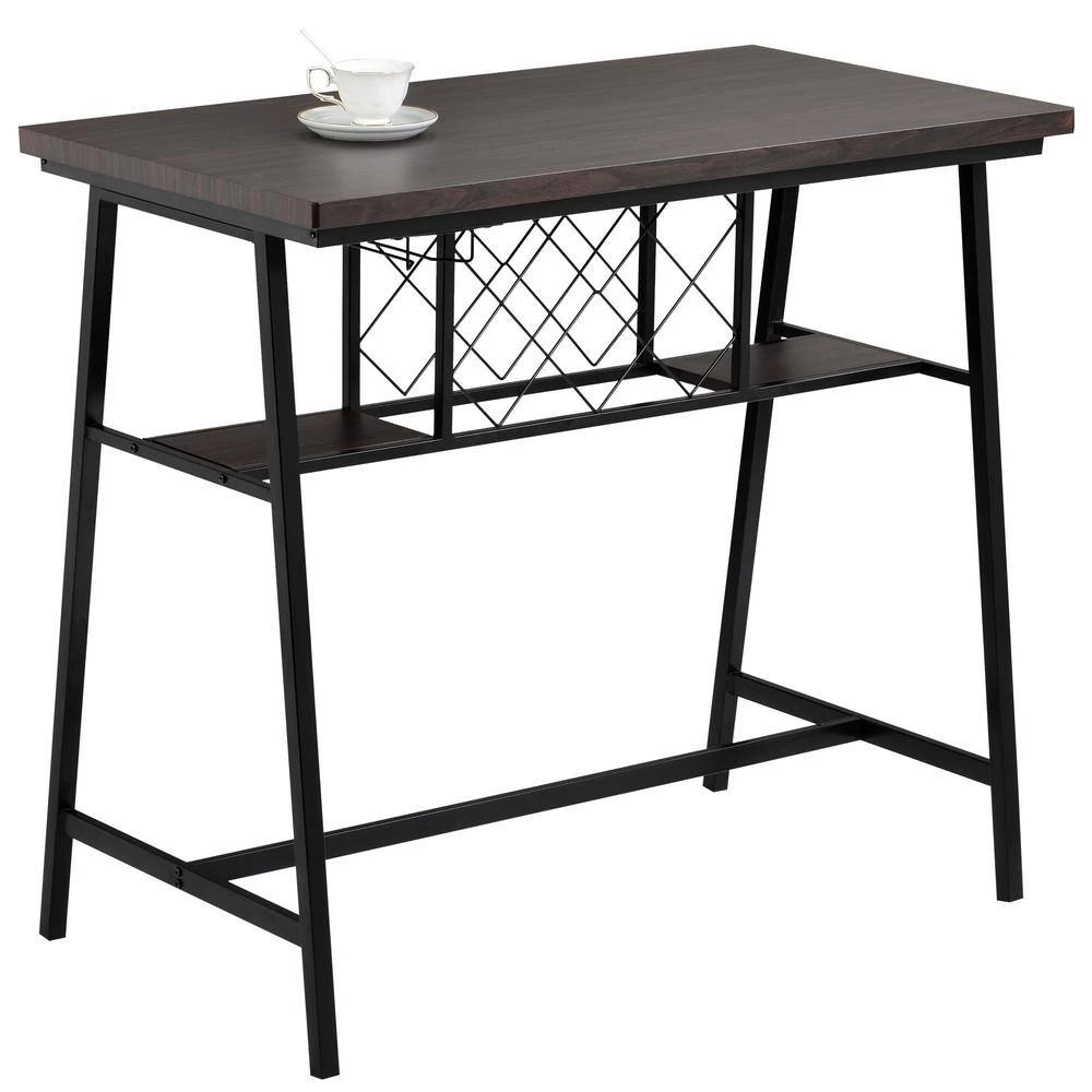 - Wine lovers can rejoice with the table underside featuring a built in. steel wine rack for storing choice wines on their side and within immediate reach, along with two steel glass hangers to keep your wine glasses secure, making it easy to have a drink and unwind with friends or solo after a long day