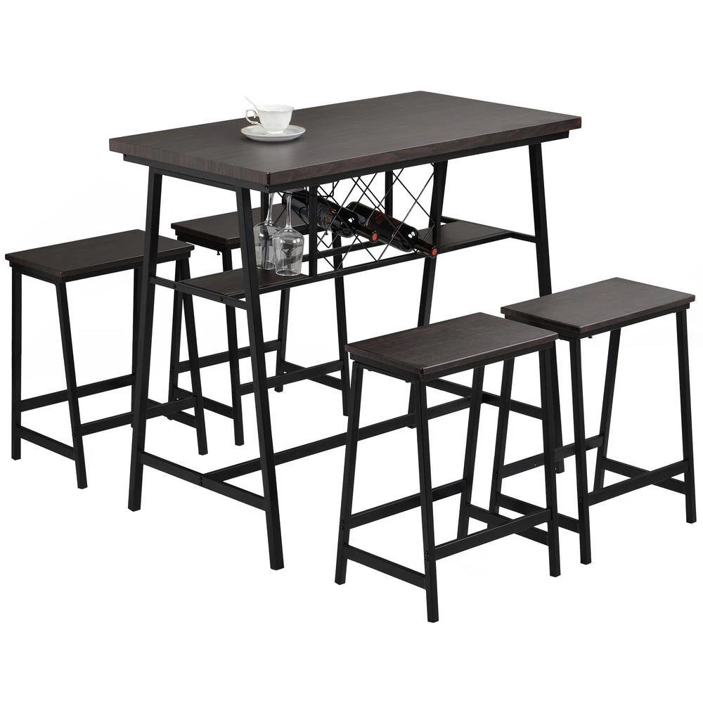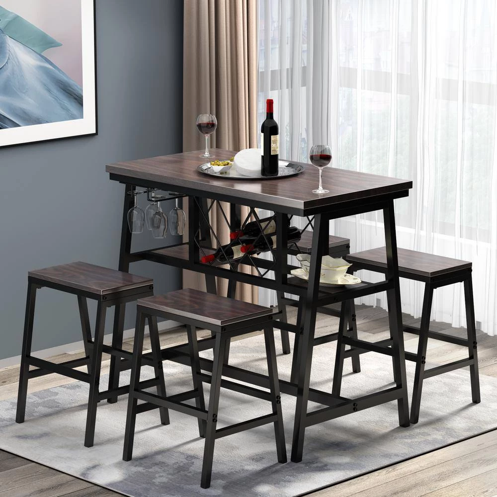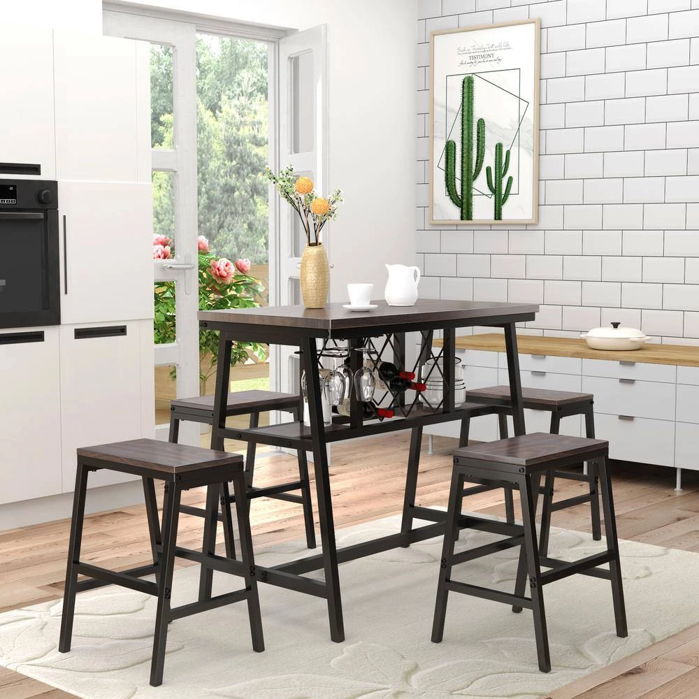 - Functional set includes a counter height table and 4-matching stools, making it able to comfortably accommodate your family without taking up valuable space, piece is a perfect addition to kitchen areas, home bistros and bars