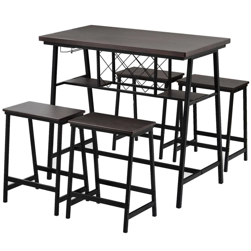 Add a warm and welcoming atmosphere to your home with this 5-piece dining set, featuring classical dark brown surfaces contrasting beautifully with a black powder coated steel frame for a modern and minimal look. Designed with streamlined silhouette, this set promised to compliment a variety of interiors. Thus,you can dine in style and comfort with friends and family.