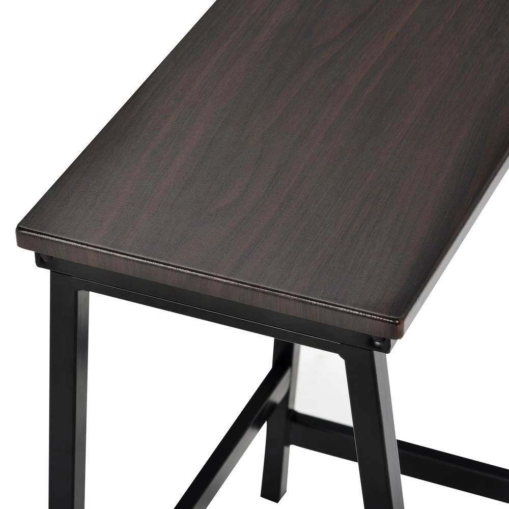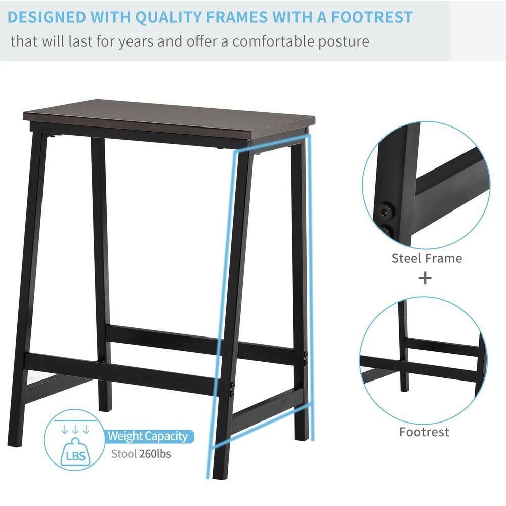 - Built for quality, this dining set is sourced from a trusted factory featuring a commercial grade steel frame with a black powder coating formulated to prevent general wear and tear, table and seat surfaces are constructed with a wood grain textured premium pvc veneer that is water and scratch resistant to help preserve your set