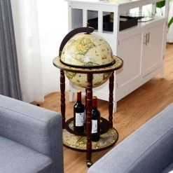 6-Bottle Italian Style Design Wooden Globe Liquor Bottle Wine Rack with Wheels by Boyel Living
