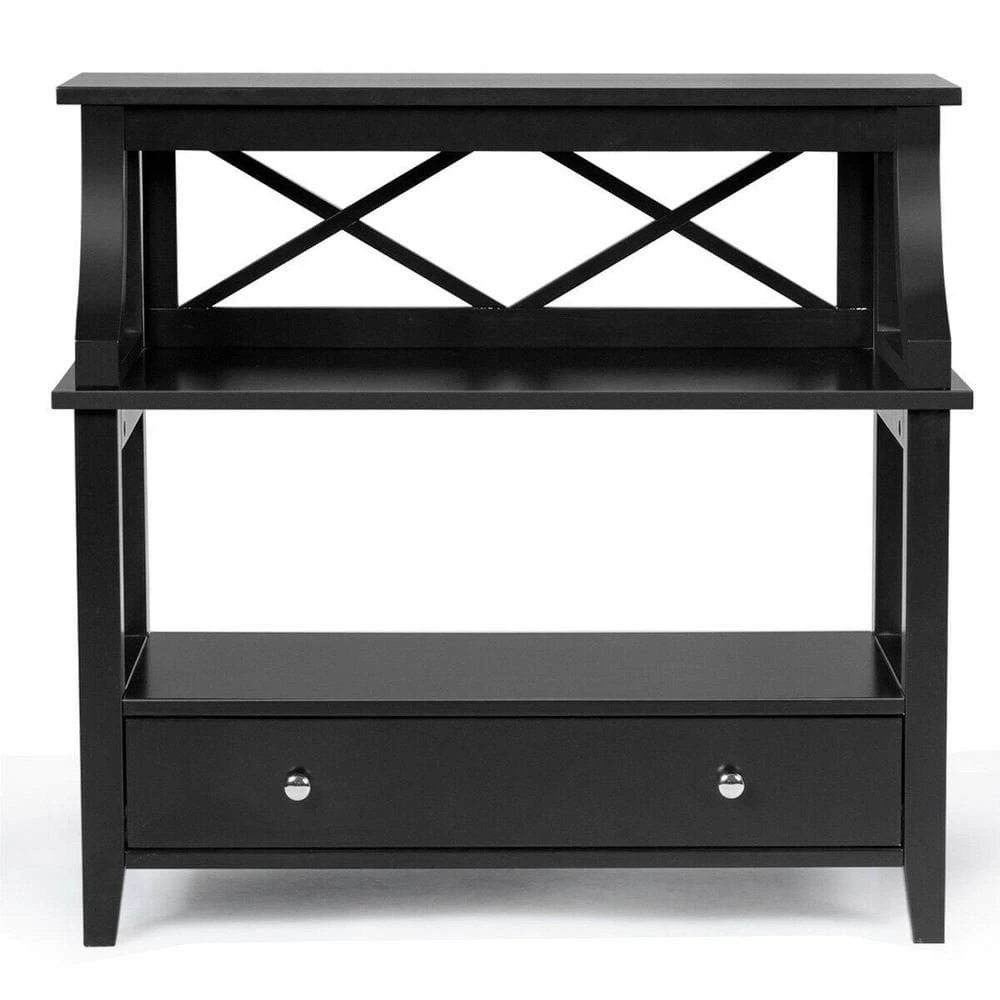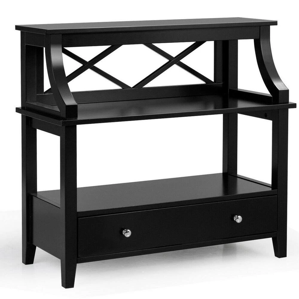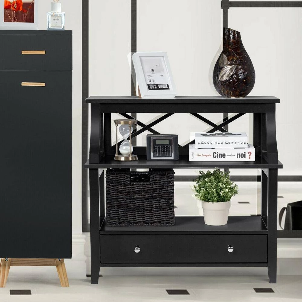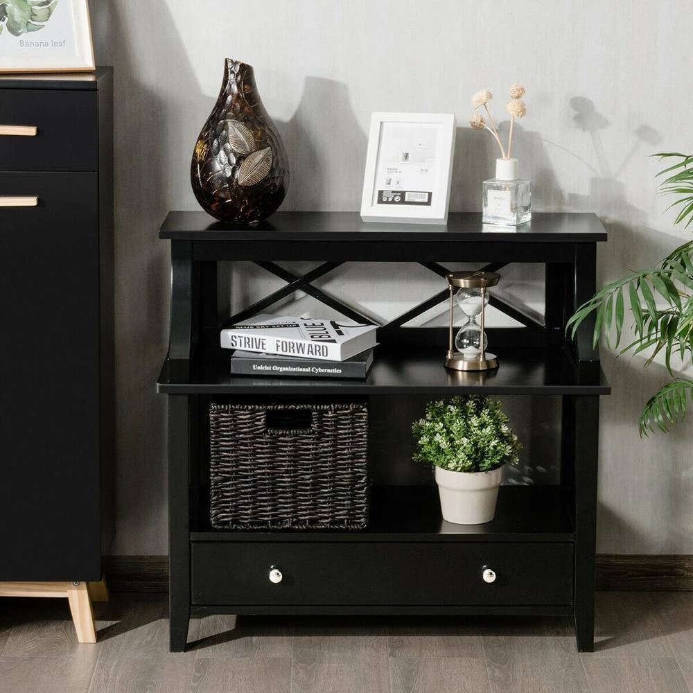 - Ample storage space: storage rack is designed with a 2-tier shelf and a sliding drawer to provide enough storage space for you to store a variety of things based on your needs, makes it easier for you to find your things when you need them, adorn the rack with items such as clocks, vases, or photo frames