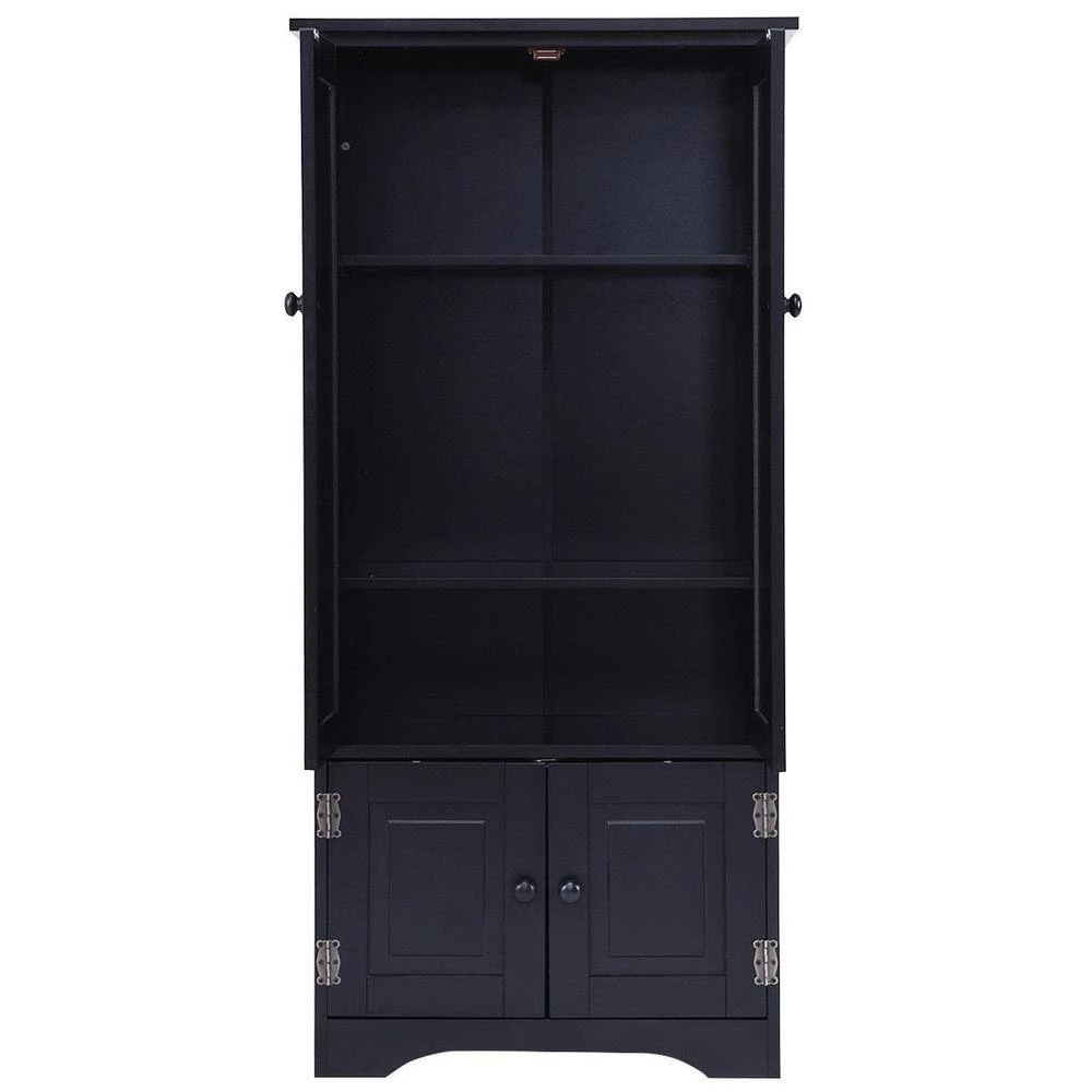 The cabinet features an antique finish color and brings elegance and classic style to your home decor. With divisional big storage spaces for all misc stuff storage, it helps keep your room neat and clean, easy for you to sort out items when you need them. This cabinet is beautiful and versatile. It is large enough to suit your needs yet small enough to fit easily in your limited space. Antique accent style greatly enhances the overall look of your collection and your room.