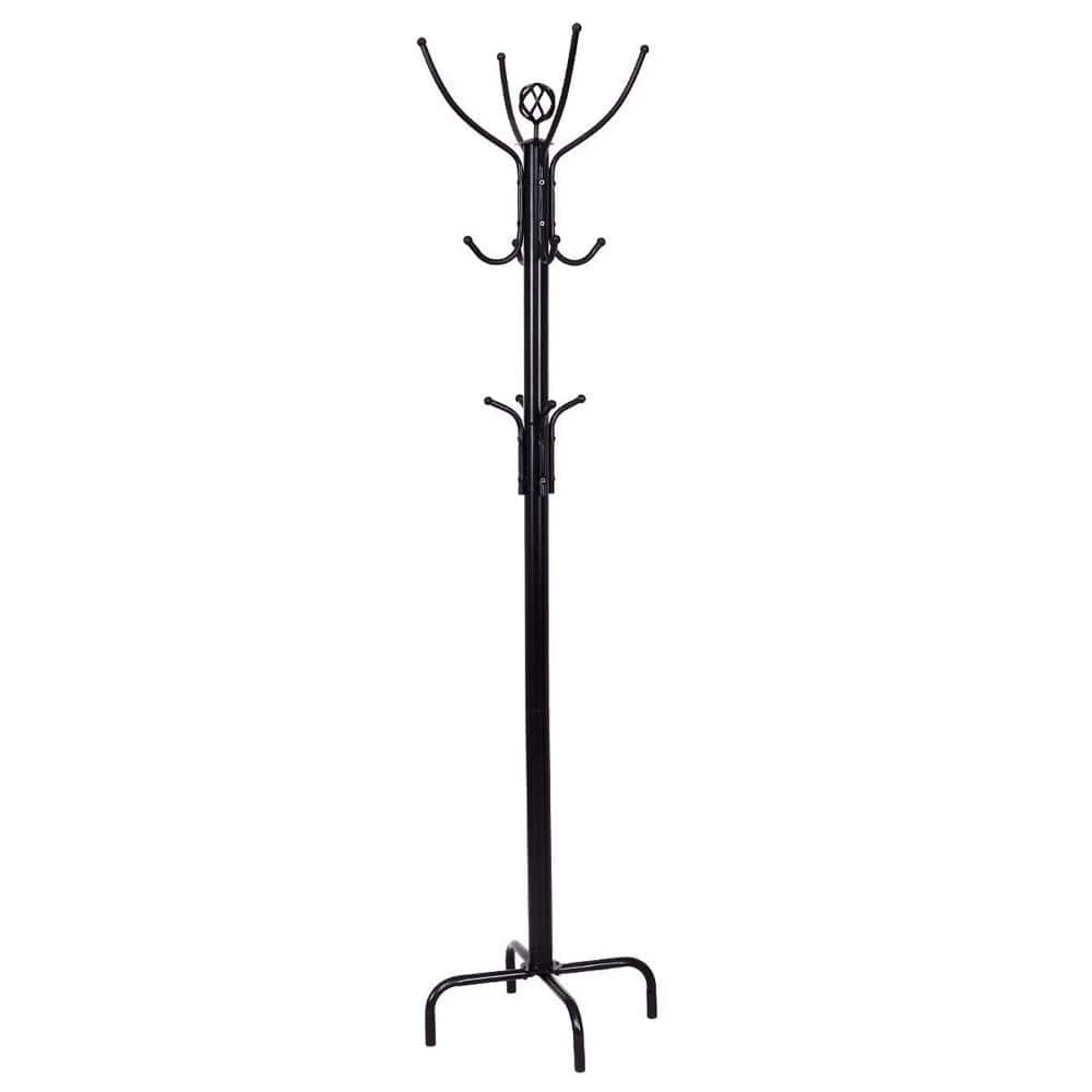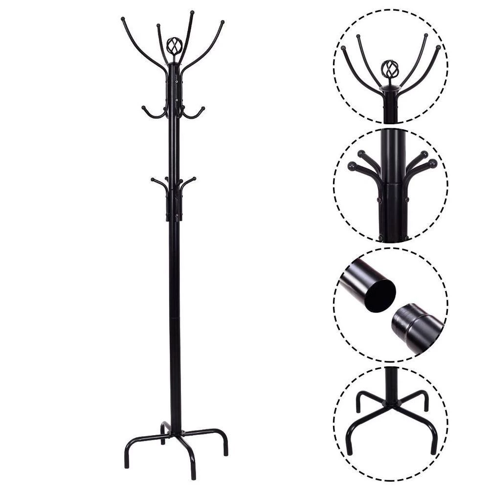 This is elegant and stylish coat rack, which is a perfect stable free-standing hanger for coat, clothes, hats, shoes, umbrella, purse and so on.Made of powder-coated steel, it is rust, anti-corrosion, durable for lifelong use.This hall stand will make your room more neat and beauty.