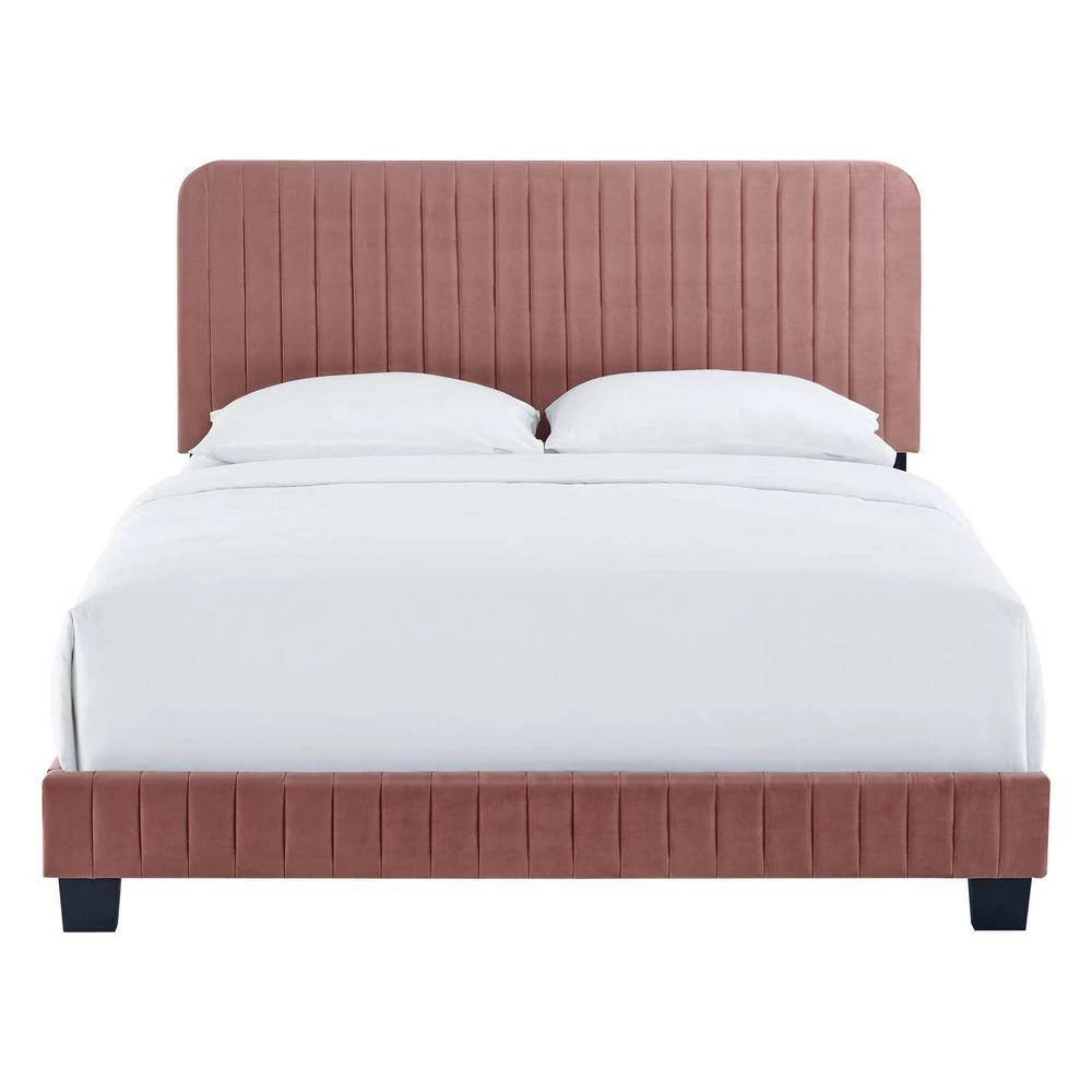 Elevate your guest bedroom or teenager’s bedroom style with the luxe texture and glam deco elegance of the Celine Full Bed. Adorned with channel tufted detail, the full size headboard of this upholstered bed is padded in dense foam to offer supportive comfort while sitting up resting, relaxing, reading, or watching TV. Upholstered in stain-resistant performance velvet, this full size bed features support legs for added durability. A sturdy mattress foundation, this full size bed accommodates a variety of mattress styles including innerspring, memory foam, and latex with the use of a box spring. Assembly required. Weight Limit: 700 lbs.