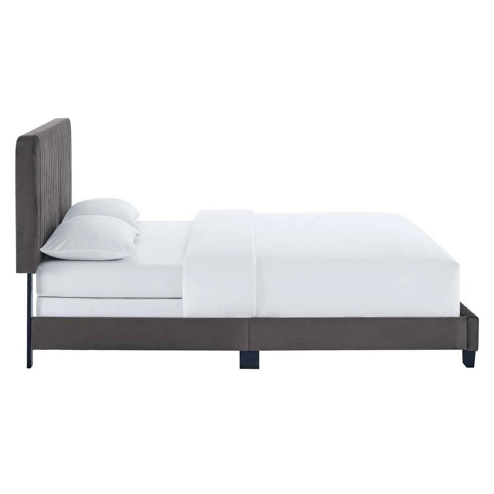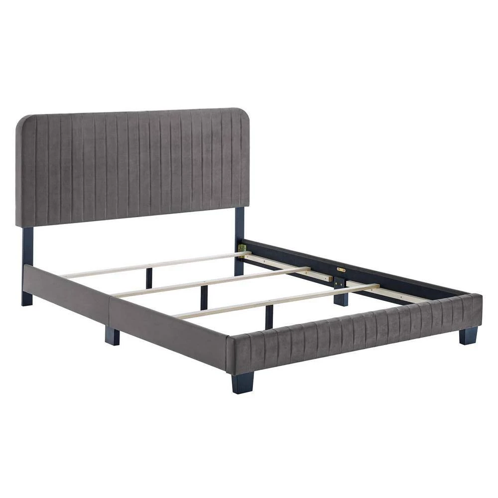 Celine Gray Channel Tufted Performance Velvet Queen Bed by MODWAY