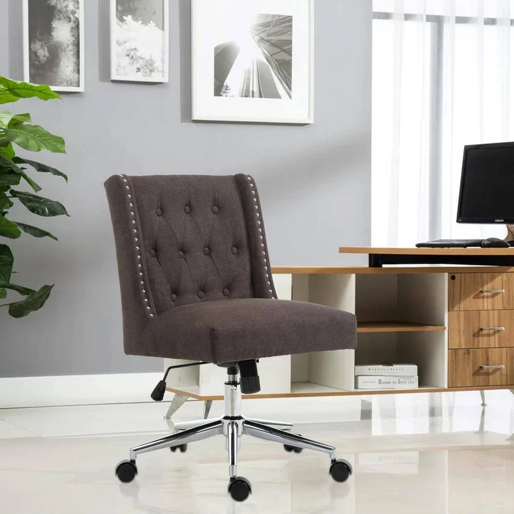 The graceful curves of the hourglass-shaped chair give it that timeless silhouette and the scooped backrest makes for a very comfortable seat. Take this extra soft task chair, its classic design along with its gleaming nailhead trim and trust button back, make it a nice decor piece of your home off the office, Featuring extra plush seating along with high back, the elegant design enables users to work a long time without fatigue. Durable metal five base and high performance all directional wheels allow smooth movement across carpeting. A well-edited workspace calls for a carefully-curated chair – and this design is it.