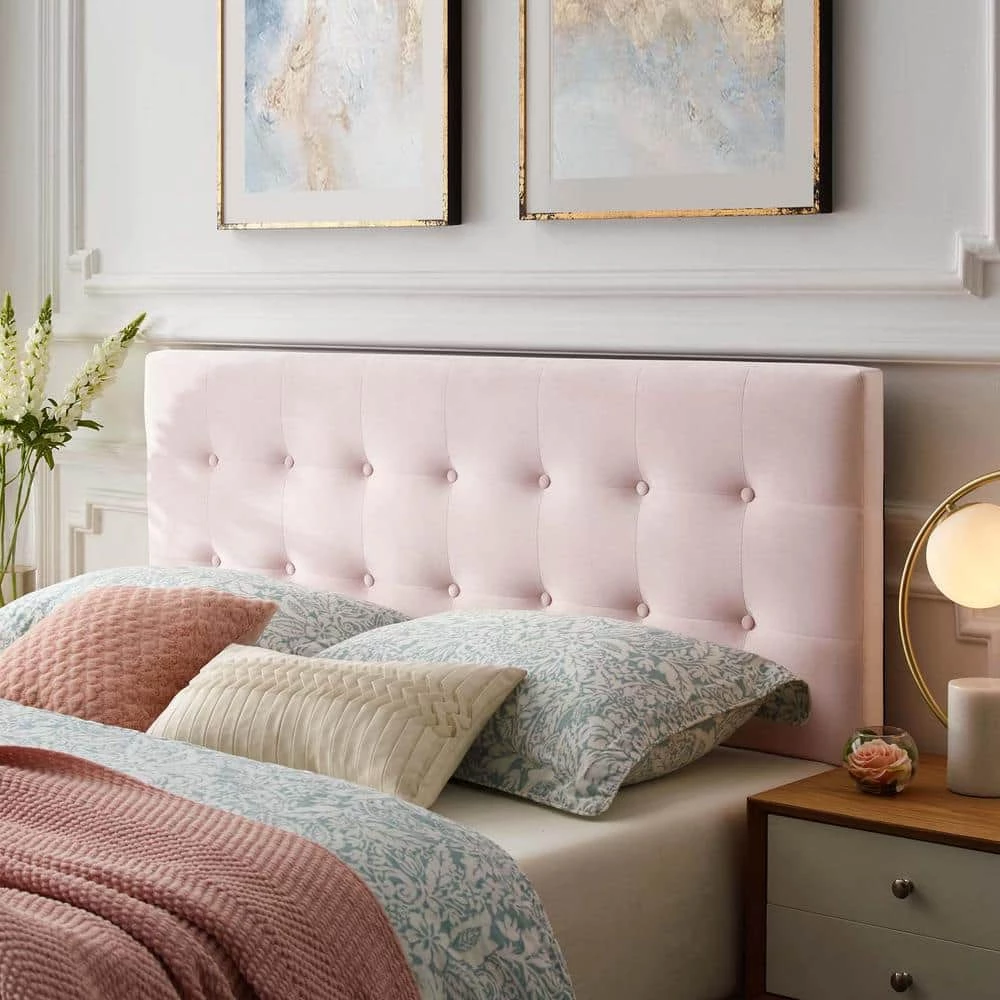 Instill classic elegance and modern luxury with the Emily Full Performance Velvet Biscuit Tufted Headboard. Emily features beautiful biscuit button tufting for plush vintage glamour and timeless appeal. An elegant centerpiece to a teen’s bedroom, guest room, or dorm, this upholstered velvet headboard for full bed frames provides a soft, stain-resistant update for premium comfort while relaxing, reading, or conversing in bed. Solidly constructed from plywood and fiberboard with dense foam padding, this full-size velvet headboard comes with five mounting positions that are height adjustable from 45 in. – 52.5 in.