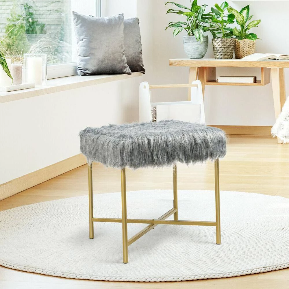 - Elegant Modern Design: This stool with faux fur surface is the fashion furniture to any room. The eye-catching metal legs add the modern element to the chair and suitable for room decoration. Its elegant appearance could bright your room.