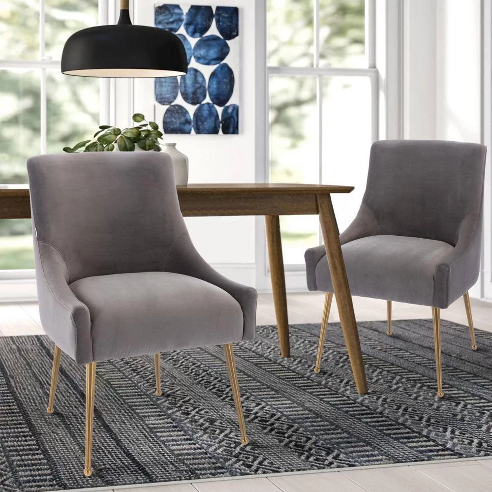 The classy dining chair is a sleek and contemporary chair to add to your dining room set. Choose from linen or velvet fabrics. This chair provides style and comfort when paired with a dining room table or even added to a breakfast nook. Sit, relax, and enjoy your time in comfort and style.