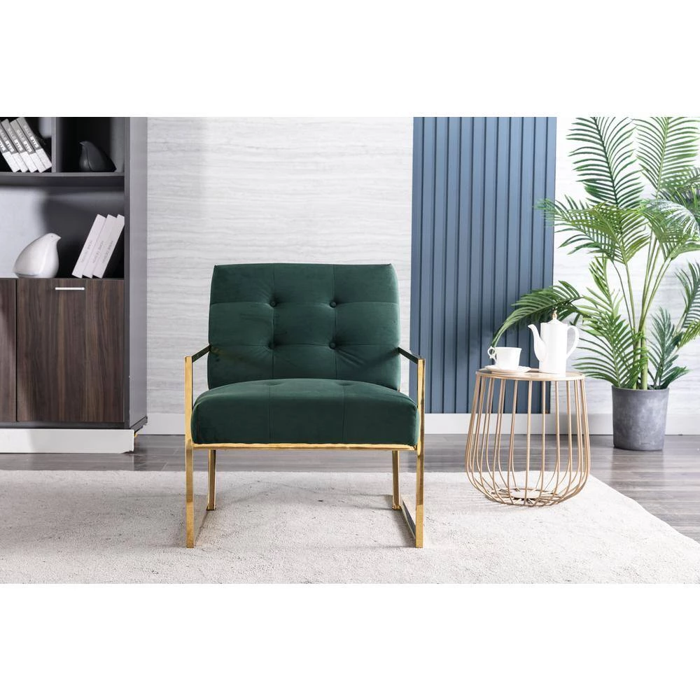Unafraid of the spotlight, this armchair offers a trendy twist on bold, Regency style and brings fashion to the forefront of your favorite spaces. Its gold-finished frame is unmistakably glam, while button-tufted velvet upholstery ties the whole look together with a nod to traditional design. Offered a wide range of color options, the dimensions of the armchair is sure to suit your specific look.