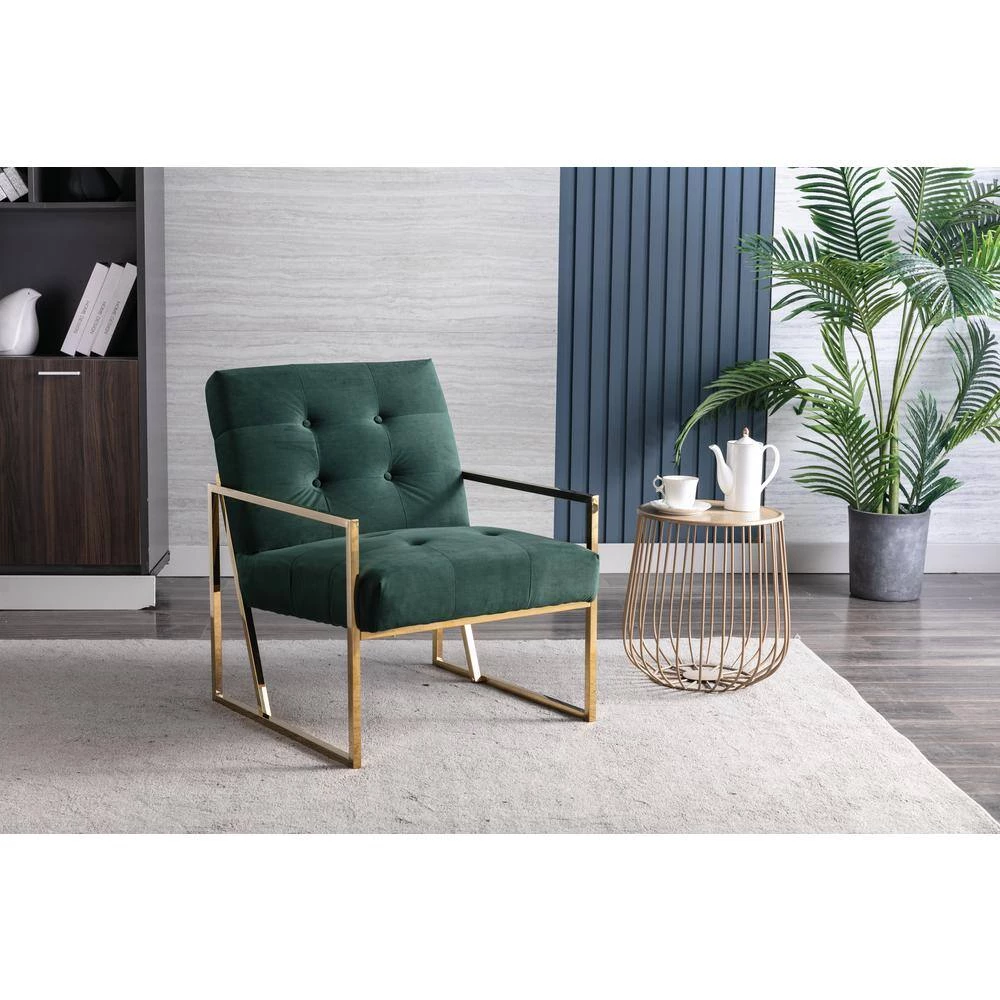 - VELVET ARMCHAIR – Upholstered in stain-resistant performance velvet, this iconic living room accent armchair sits atop a sturdy tubular gold stainless steel frame
