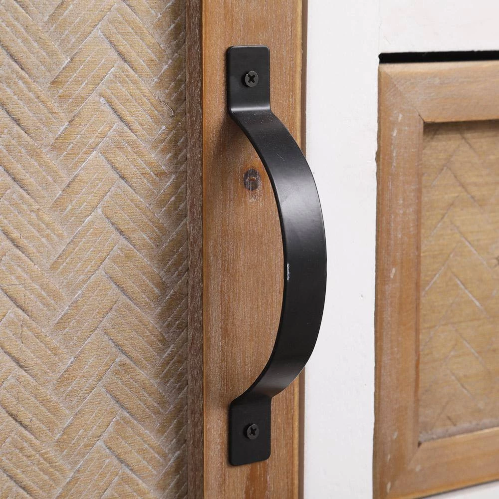 - Storage cabinet has a unique two-tone design with its painted white outer case and rustic solid wood doors weaved in a herringbone style