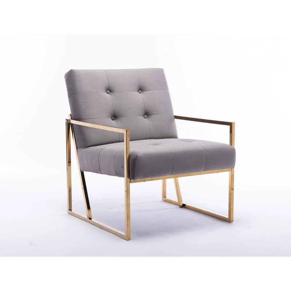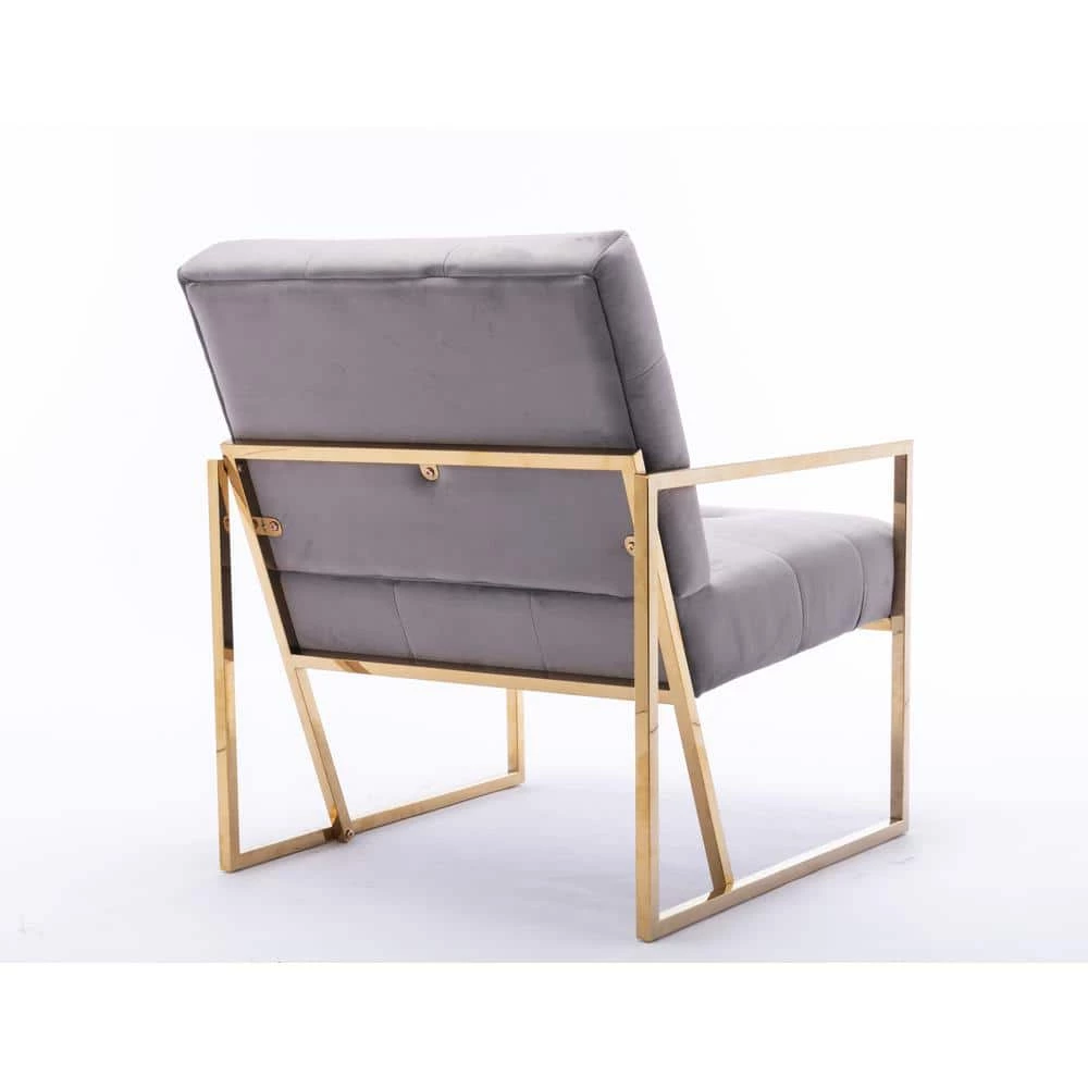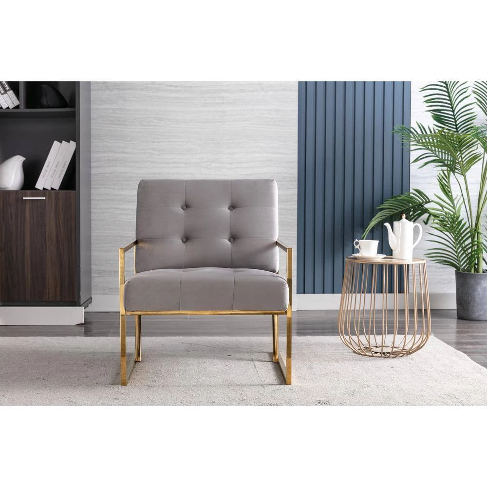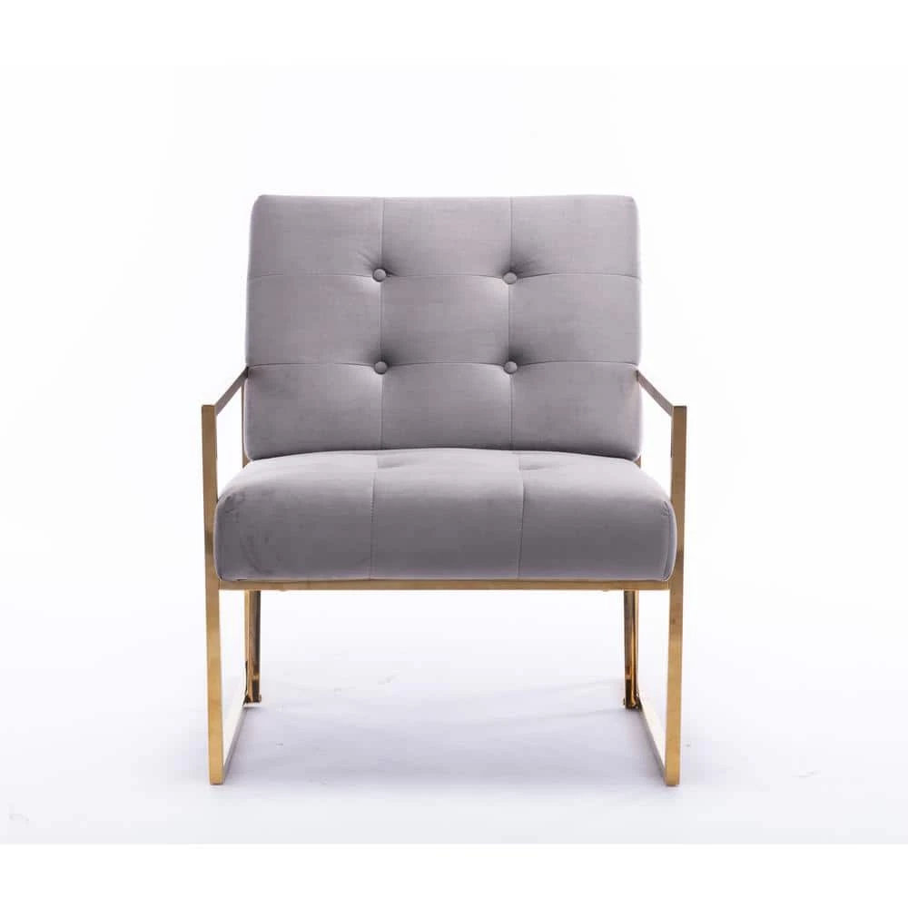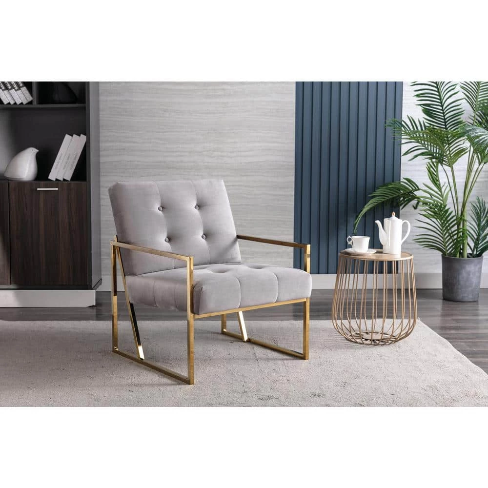 Unafraid of the spotlight, this armchair offers a trendy twist on bold, Regency style and brings fashion to the forefront of your favorite spaces. Its gold-finished frame is unmistakably glam, while button-tufted velvet upholstery ties the whole look together with a nod to traditional design. Offered a wide range of color options, the dimensions of the armchair is sure to suit your specific look.