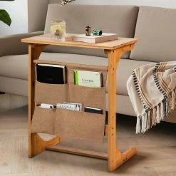 31.5 in. Natural Wood 360° Rotating Sofa Side Table with Storage Shelves and Wheels by Boyel Living