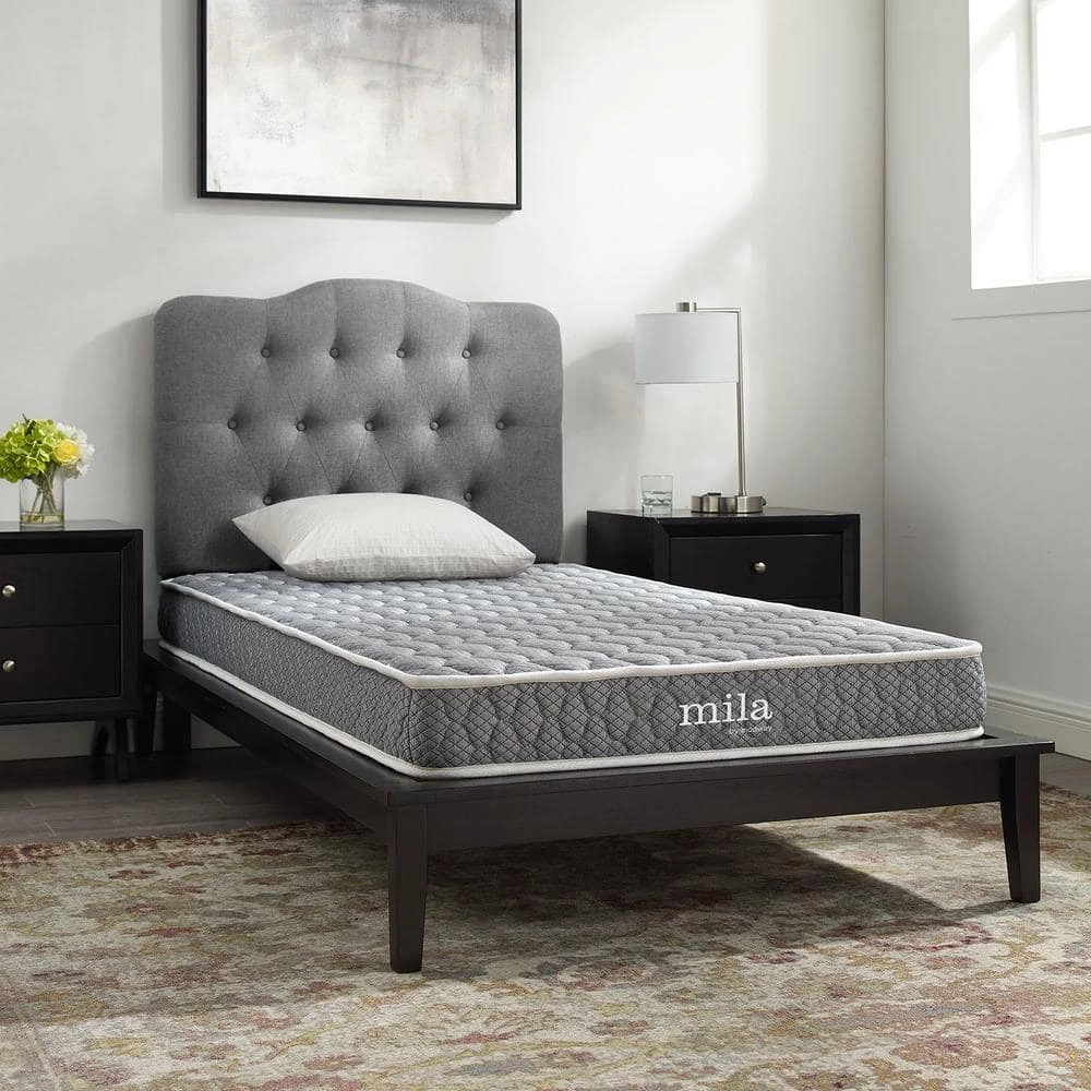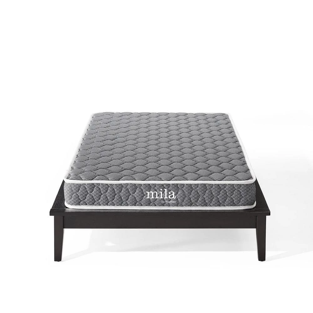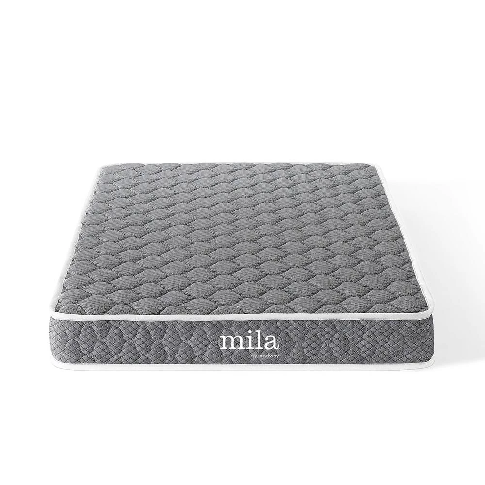 Restorative sleep is yours for the taking with the Mila 6″ Memory Foam Mattress. This twin size mattress is equipped with a layer of memory foam and thick layer of responsive foam that mold and conform to your specific weight and sleeping position. Wake up feeling rested with a memory foam mattress that relieves pressure points. A convenient mattress in a box, Mila delivers directly to your doorstep vacuum sealed, rolled, and packed into a portable box that offers easy maneuverability in hallways and up staircases. It takes about 2 hours for the mattress to expand fully in the summer and about 72 hours in the winter months. The perfect solution for kid’s bedrooms, college dorms, and guest rooms, this twin mattress meets fire-resistant standards and is complete with a stretch diamond knit polyester cover to provide lasting protection.