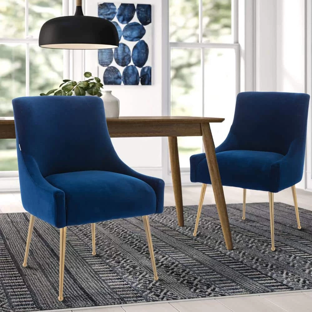 The classy Meelano dining chair is a sleek and contemporary chair to add to your dining room set. Choose from linen or velvet fabrics. This chair provides style and comfort when paired with a dining room table or even added to a breakfast nook. Sit, relax, and enjoy your time in comfort and style.