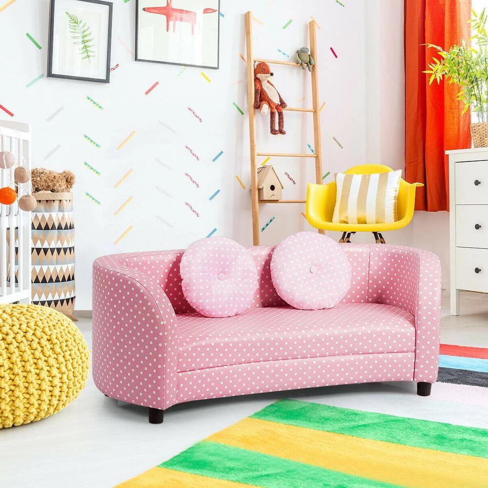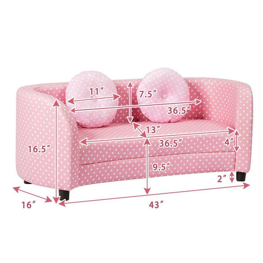 If you’re looking for the perfect gift for your little ones, our kids’ sofa will be the perfect choice for you. The pink look and cute style make it eye-catching for any child. The sturdy eucalyptus frame construction and quality materials make this furniture stable and durable, ensuring its long life. The resilient foam is not easily deformed after sitting for a long time. Soft foam and two cloth pillows add to the comfort of your kids PVC leather surface makes it durable and ensures its long life, it provides strong support for your child’s back and lumbar area while protecting them from falls. Since the PVC surface is smooth and waterproof, you can easily clean it with a cloth. This sofa is the perfect size for kids to do the things they love, like reading, eating snacks or watching TV. Thanks to its lightweight design, even your baby can move it effortlessly.
