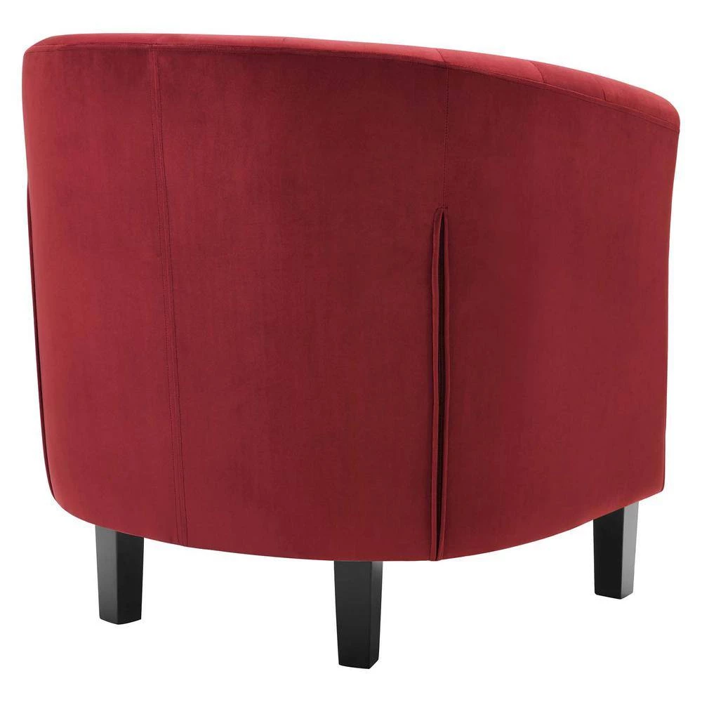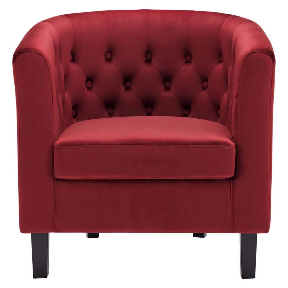 Intrinsically luxurious, Prospect is a throwback to the classic Chesterfield design, while delivering an engaging modern look filled with passion and drive. Button tufting and sweeping curves blend to form a contemporary lounge piece that all will be drawn to. This cozy armchair with espresso stained wood legs and non-marking foot caps features comfortable foam padding and soft, stain-resistant velvet polyester upholstery.