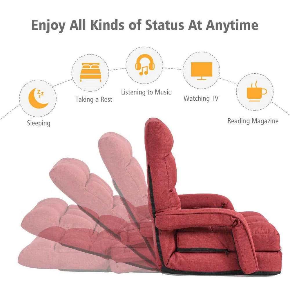 - Adjustable 5 backrest positions: this convertible floor single sofa can be fully adjusted and firmly fixed in 5 positions from 0° to 180°, satisfying all your needs to sleep, reading and relaxing and perfectly fitting your spine to provide the optimal comfort
