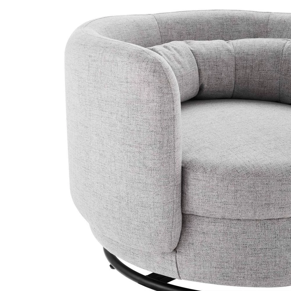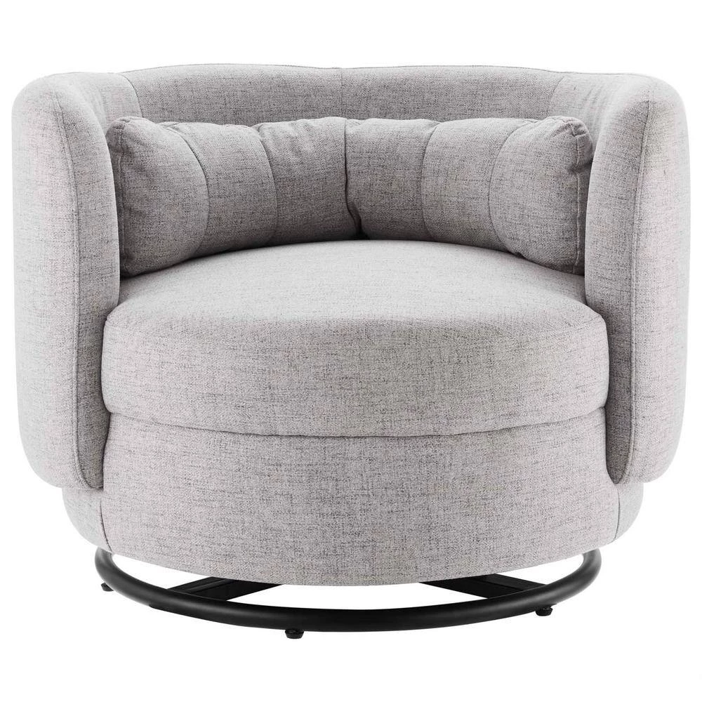 Perfect for the living room, entryway, bedroom, office, or other seating area, the Relish Fabric Upholstered Swivel Chair brings luxury and relaxation to the modern home. Featuring a curved silhouette and soft tactiles, this upholstered accent chair abounds in contemporary modernity. This swivel chair is upholstered in soft polyester fabric. Dense foam padding and a spring support system allow this swivel chair to offer a premium seating experience. Resting on an black metal swivel base, this accent chair effortlessly rotates to suit the needs of the moment. Weight Capacity: 300 lbs.