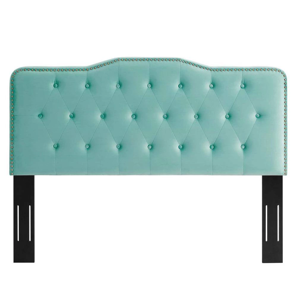 Refresh your master bedroom or guest bedroom with the glam deco style and vintage modernity of the Sophia Tufted Performance Velvet King/California King Headboard. Adorned with classic button tufting and Framed with nailhead trim, this king/Cali king size headboard features a charming silhouette. Upholstered in stain-resistant performance velvet, this padded headboard offers supportive comfort while sitting up in bed resting and relaxing. An elegant addition to the bedroom, this height-adjustable headboard for king or California king bed frames is complete with five mounting positions. Assembly required.