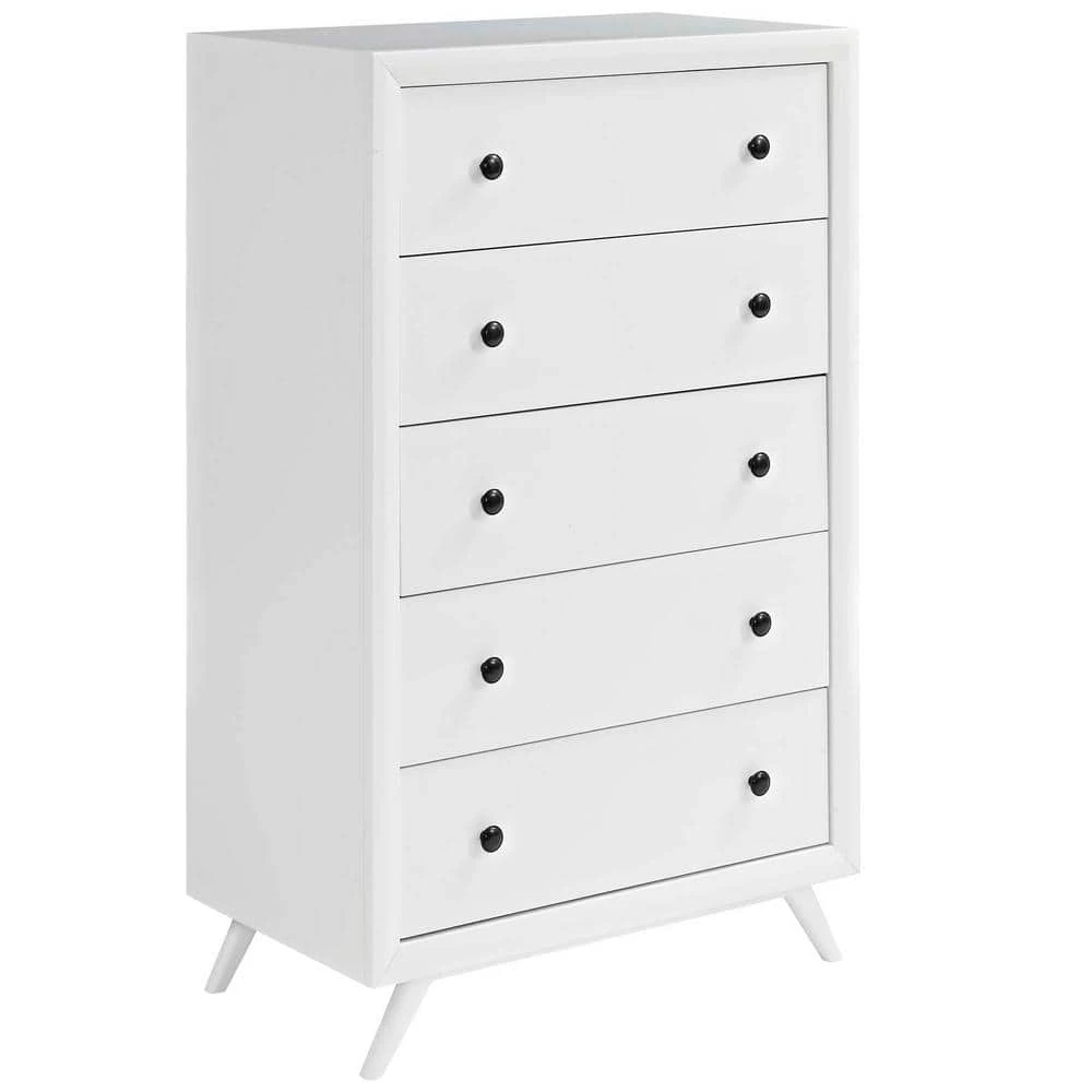 A vintage look and rich mid-century design adorn the tracy bedroom chest. This finely crafted toffee brown stained piece comes with six easy-glide storage drawers, antique finish metal handlesand outstretched platform legs. Built upon solid edging and artisanship techniquesthe tracy chest requires assembly and wipes clean with a dry cloth.