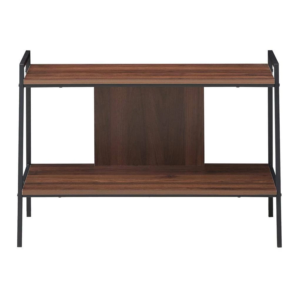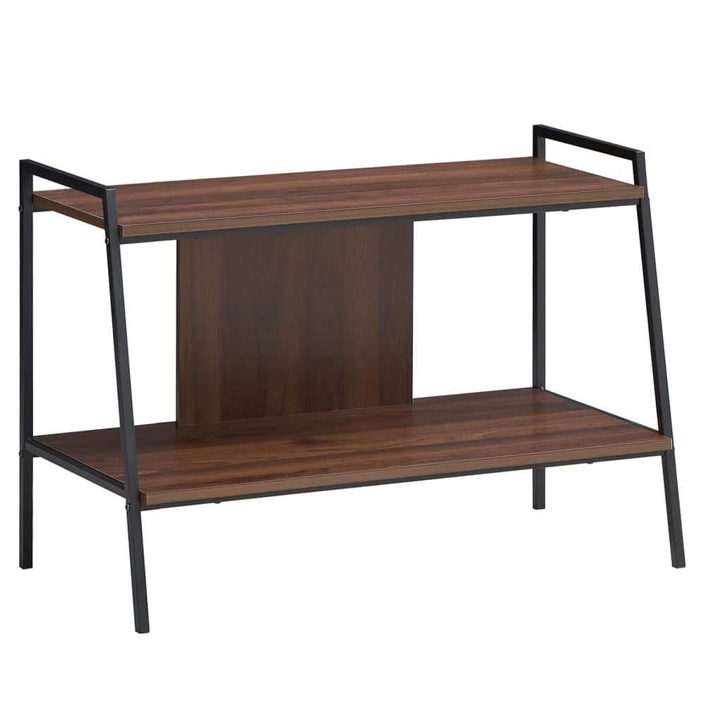 Made of metal frame and engineered wood, this TV stand is sturdy and durable for a longer lifespan. Trapezoid structure and middle panel enhance its stability. 2-tier storage shelves are designed to place TV, cable box, plants, photo frame, etc. The top is large enough to accommodate up to a 40 in. TV. With minimalist and elegant style, it is perfect for a bedroom, living room, office, and so on.