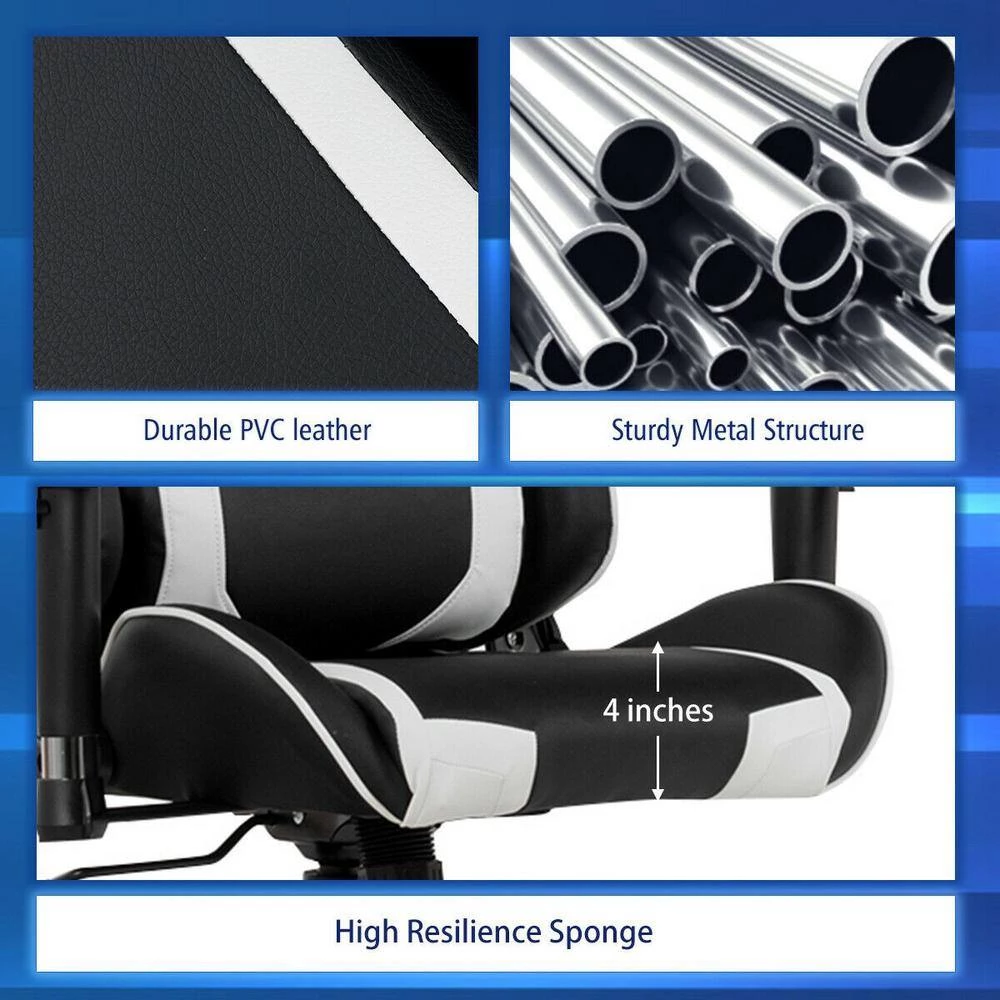 A comfortable sitting experience will account for better gaming conditions. And this ergonomic gaming chair makes it. It is designed with an adjustable backrest so that you can sit or lay there at a perfect Angle to relax your body. A height-adjustable seat is capable of meeting the requirement of different people. Headrest and massage lumbar cushion reduce discomfort in the neck and lower back to relax your body. Other features include a 360-degree swivel design, adjustable armrest, smooth-rolling wheels, which combines greater comfort and convenience. The five-claw base can disperse pressure imposed on the chair to keep it more stable. Soft sponge and faux leather upholstery will never let you down. In addition, depending on the need of each user, the gaming chair can be used as an office chair as well. Note: Recommended for charging with power bank instead of charging on the plug to avoid breaking the USB connector.